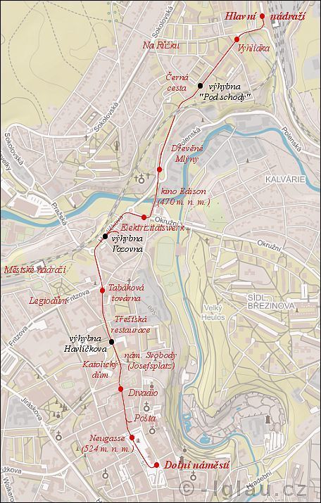 Nejnižší bod trati byl u Jánů, 470 metrů nad mořem, nejvyšší naopak nahoře u pošty na náměstí, kde tramvaj překonávala v ústí Komenského ulice nadmořskou výšku 524 metrů. (V podobné nadmořské výšce jako v Jihlavě jezdily tramvaje již jen v Jablonci nad Nisou a v Mariánských Lázních.)