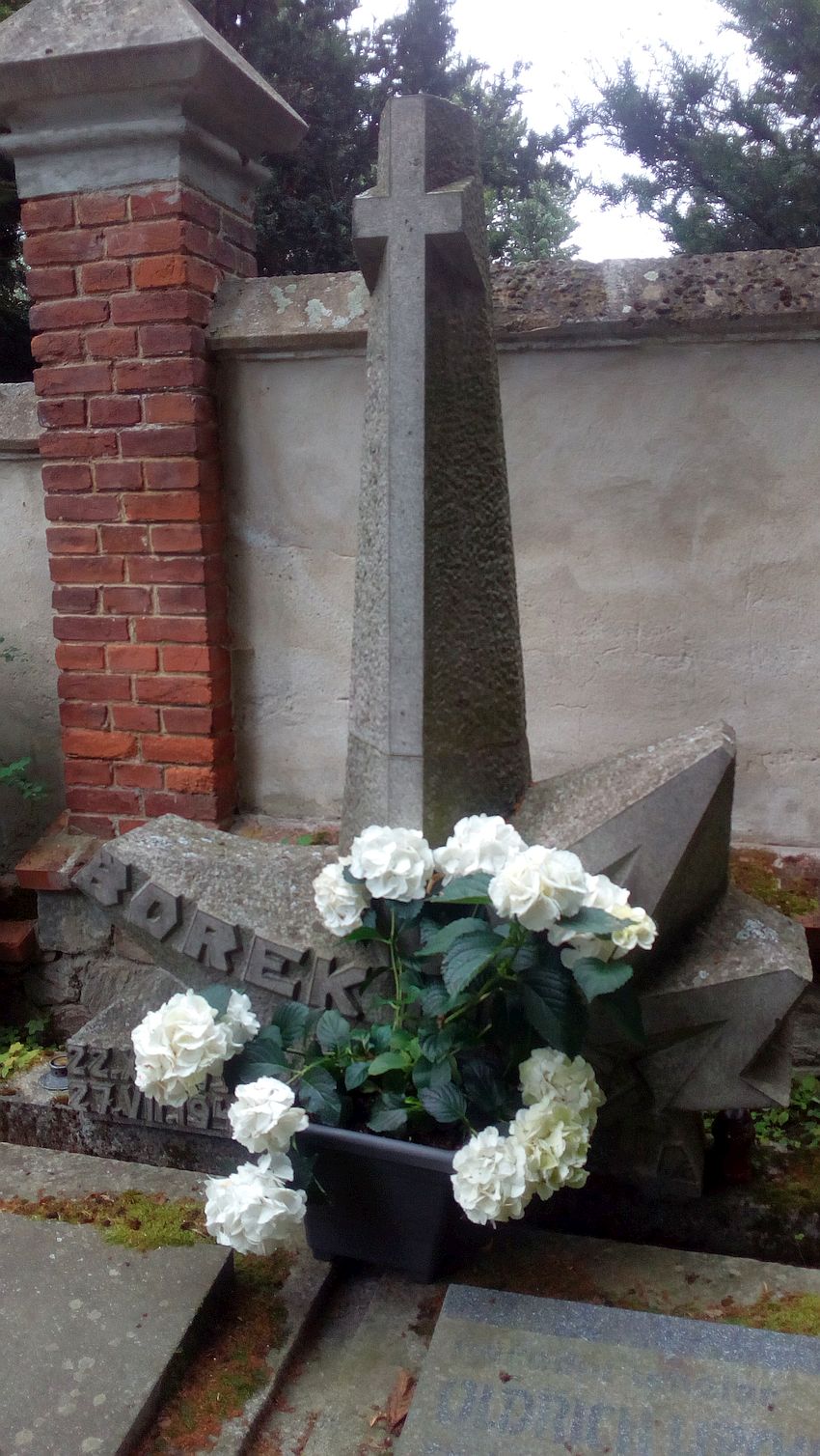 Detail náhrobku Borka Lipského na hřbitově v Pelhřimově. (Foto: autor článku)